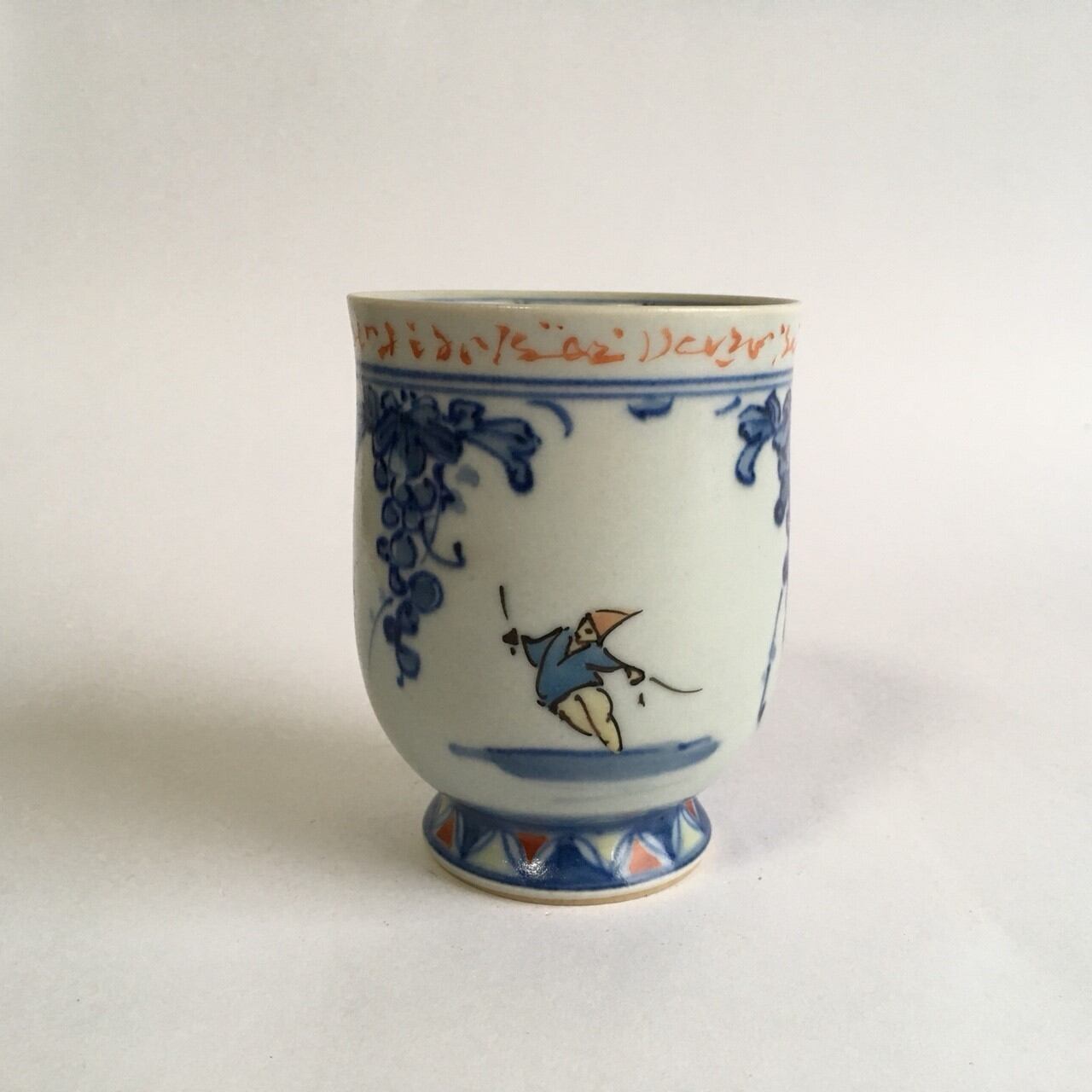 葡萄の園を 駱駝を連れて をデザインしてます。 容量としては 一合入りますので 程よい大きさです。 一つづつ手描きで制作しておりますので、写真の商品と多少変化がある場合があります。 商品は桐の箱に箱詰めされてお届けいたします。 口径6.9cm x 8.8cm